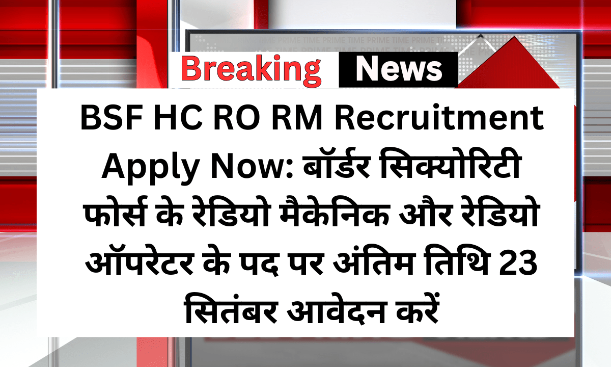 BSF HC RO RM Recruitment: बॉर्डर सिक्योरिटी फोर्स लगातार एक से अच्छी एक पदों पर नोटिफिकेशन जारी कर रही है और उनके द्वारा निकाले गए रेडियो मैकेनिक और रेडियो ऑपरेटर के पदों पर आवेदन करने की अंतिम तिथि 23 सितंबर होने वाली है और ऑफिशियल तौर पर नोटिफिकेशन इसका अगस्त में ही 24 अगस्त को जारी कर दिया गया था और पेमेंट करने की अंतिम तिथि 23 सितंबर 2025 होने वाली है तो आपके पास तीन दिन का समय बचा है अगर आप आईटीआई की डिग्री रखते हैं और पात्रता रखते हैं तो रेडियो ऑपरेटर और रेडियो मैकेनिक के पदों पर आवेदन कर सकते हैं और भी जानकारी आपको विस्तार पूर्वक दिया जाने वाला है और तीन दिन का समय बचा है आप उससे पहले ही आवेदन कर ले।